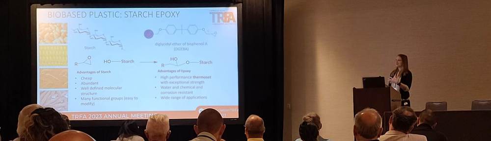Ph.D. Candidate Nicole Tratnik won first prize in the Excellence in Thermoset Polymers Research Competition hosted by the Thermoset Resin Formulators Association for her paper titled “Recyclable, self-strengthening starch-based epoxy vitrimer facilitated by exchangeable disulfide bonds”. She was flown out to Denver, CO to present her work at the TRFA Annual Meeting with over 120 attendees. Her award-winning paper can be found here.